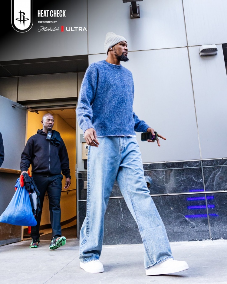 今天是多巴胺配色!火箭眾將穿搭:KD藍色毛衣小白帽 小謝紅衛(wèi)衣