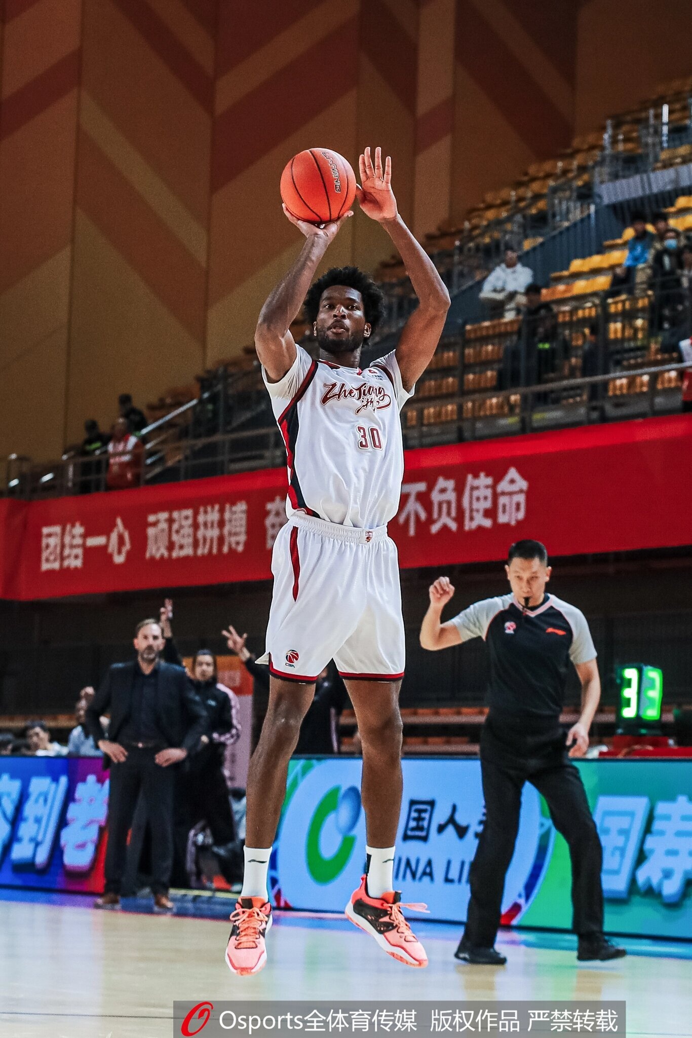 本場(chǎng)比賽,浙江兩位外援達(dá)卡里·約翰遜和達(dá)米安·瓊斯均有穩(wěn)定發(fā)揮,約翰遜30分鐘15投7中,三分1中0、罰球6中3拿到17分12籃板3助攻1搶斷2蓋帽,正負(fù)值+1;