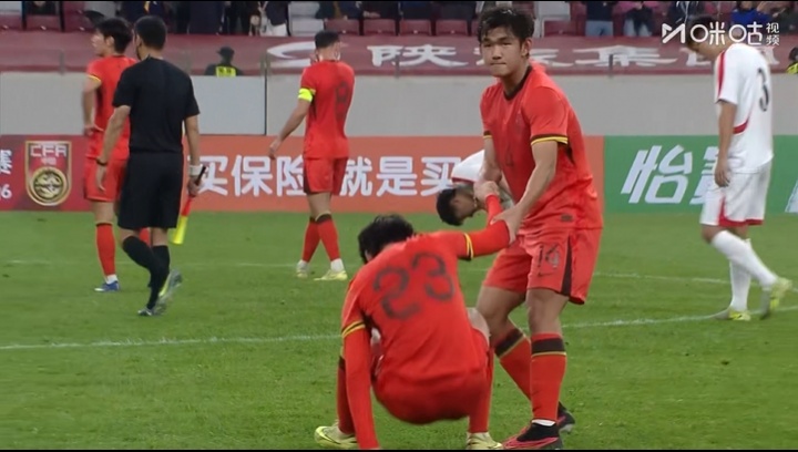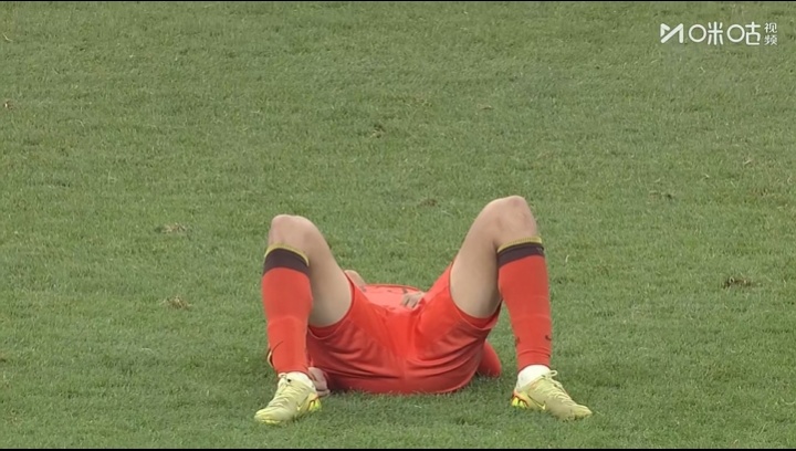 力竭了!終場哨響,拼了一整場的李新翔躺倒在地,隊(duì)友前來拉一把