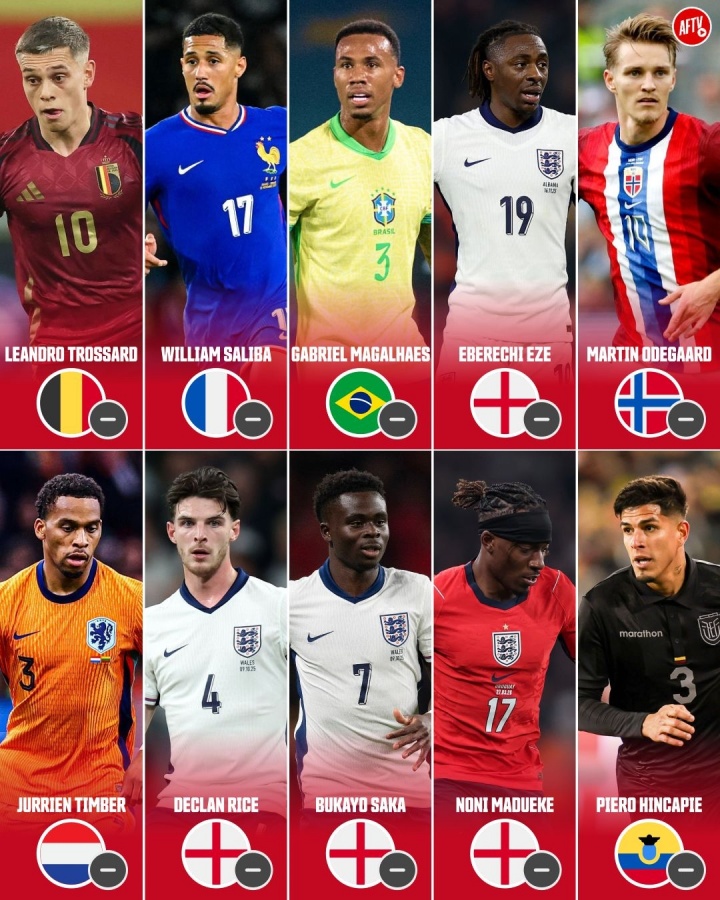 目前仍在成年國(guó)家隊(duì)中的阿森納球員: